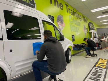 Class room time with Professor and hands on Training Wall. True first car wrap experience to get the knowledge on materials and techniques